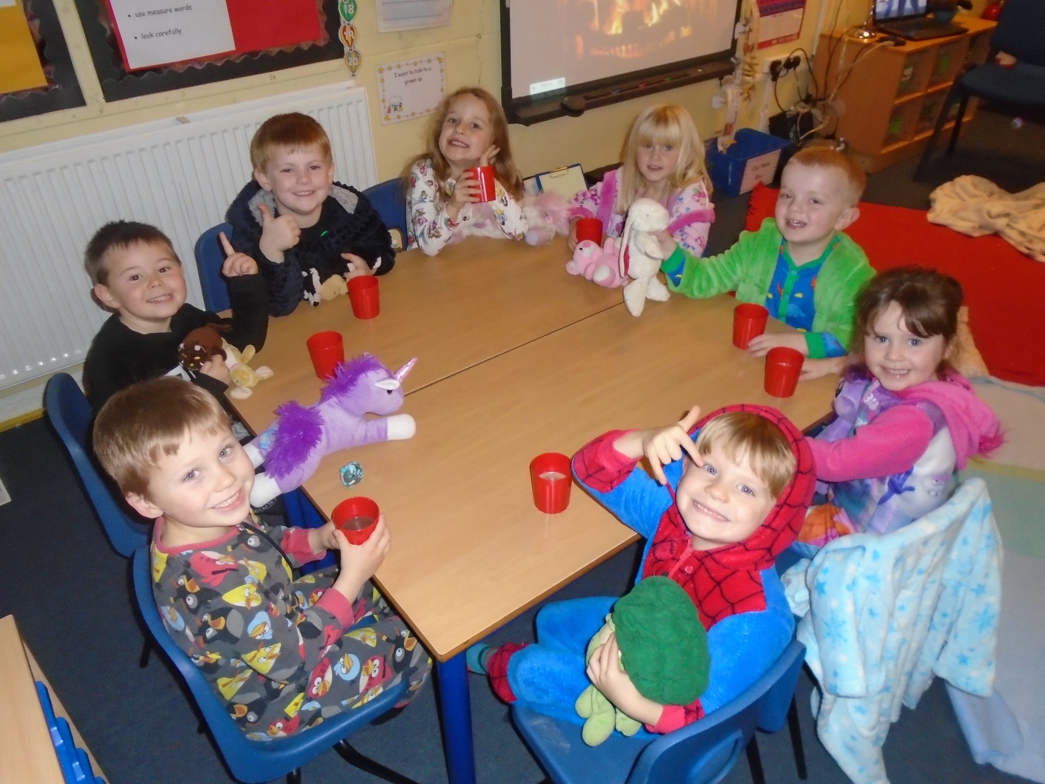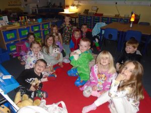 Lots of children from Badger Class enjoyed returning to school in their pyjamas to listen to Mrs Randle read them some bedtime stories. The classroom was decorated with candles and twinkly fairy lights and we snuggled up with our teddies in front of the fire to listen to 3 lovely stories. We also has a yummy hot chocolate to warm our tummies and talked to our friends.