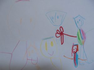 From this starting point, the children explored buildings, creating their own houses from a range of materials. It also encouraged the children to talk about their families and many of the children used mark making to record special things about their families.