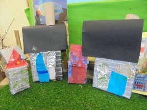 From this starting point, the children explored buildings, creating their own houses from a range of materials. It also encouraged the children to talk about their families and many of the children used mark making to record special things about their families.
