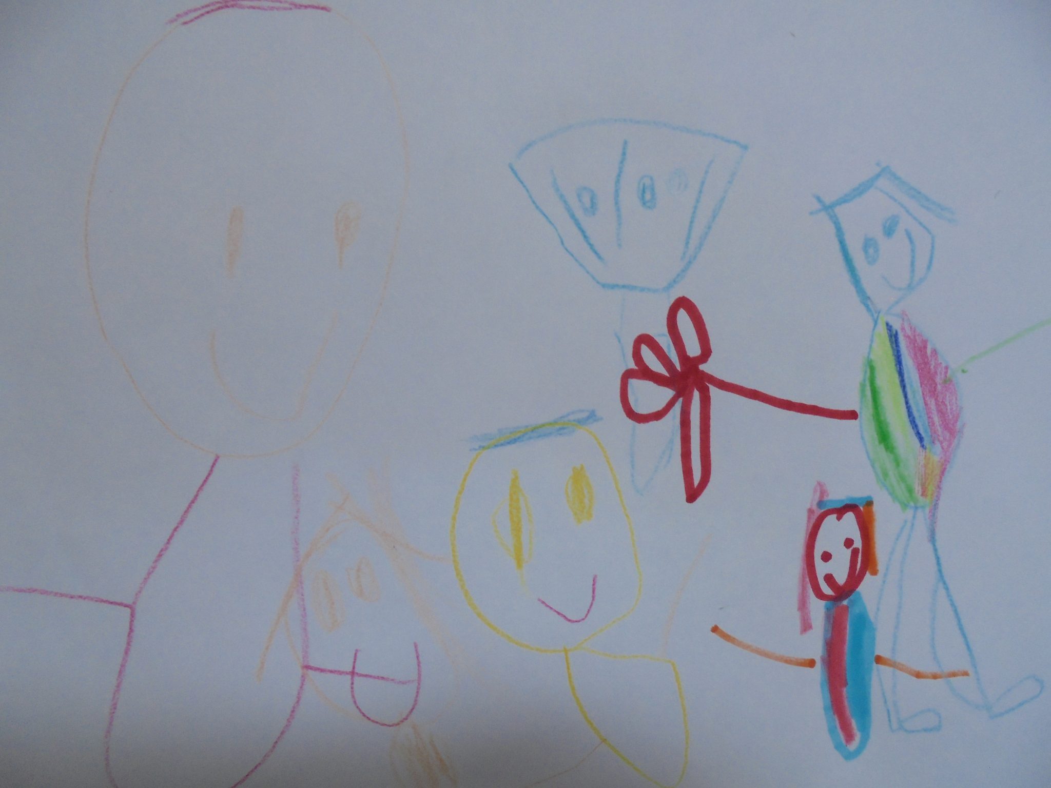“Once upon a time there was three little pigs and they were too big and they had to move into a different house. Then one of the pigs found a man selling straw and he asked if he could have it and the man said ‘yes’. Then the next pig found a man chopping trees and he said ‘please’, so he could have those and he said ‘yes’. Then she went to find bricks, so she built house of bricks. Then the Big Bad wolf came to the house of straw and he huffed and puffed and blowed it down. Then she went to the other house and blowed it down and then another day the Big Bad Wolf came they runned to his brother’s house. They slammed the door and that is it!” Told by Paige